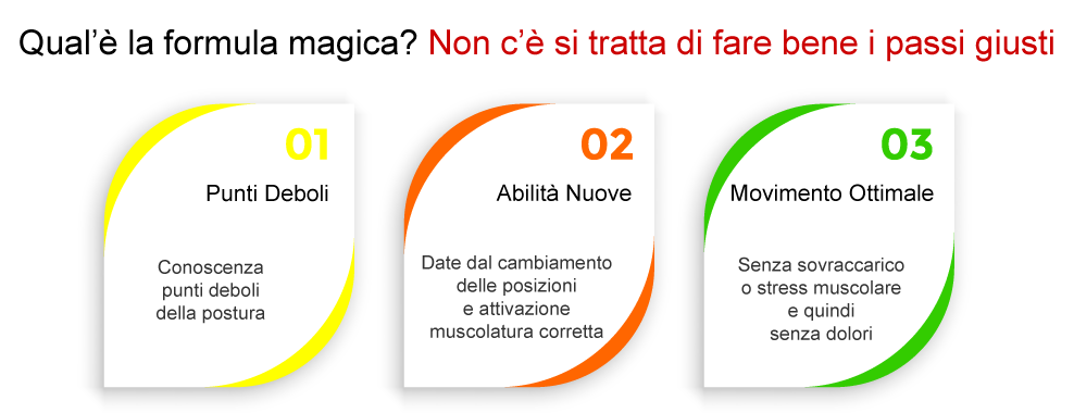 Le manovre e gli esercizi specifici hanno come obiettivo l’integrazione di nuovi schemi di movimento per raggiungere una postura ottimale e per evitare le dinamiche di sovraccarico, originarie di molte patologie dell’apparato muscolo-scheletrico.